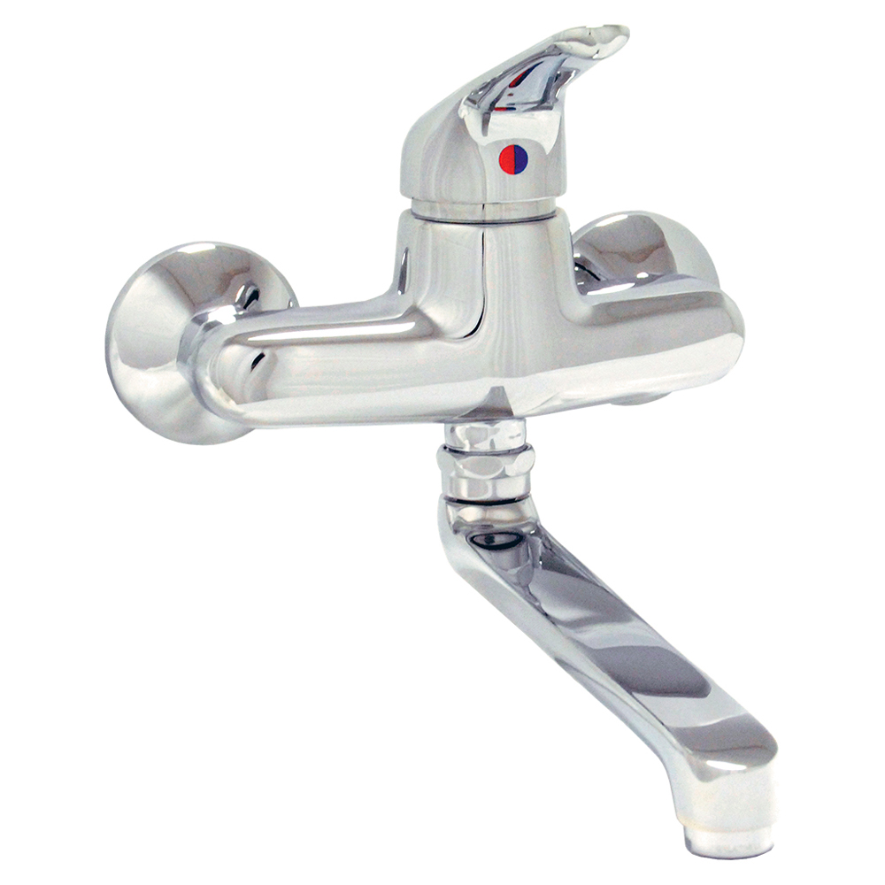 Cuerpo y embellecedor en latón cromado. Apertura por maneta plana de 150 mm,de fácil utilización y mantenimiento. Caño giratorio de largo 200 mm muy práctico para el lavado óptimo. Cartucho cerámico de Ø40 mm multifunciones: limitación de temperatura con 7 posiciones de regulación. Aireador F22 X 1 con salida libre. Seguridad y ahorro en el consumo de agua.